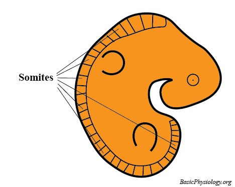 These block of cells, now called somite, start to generate a pattern of segments in the embryo which will form the pattern of the vertebral column.