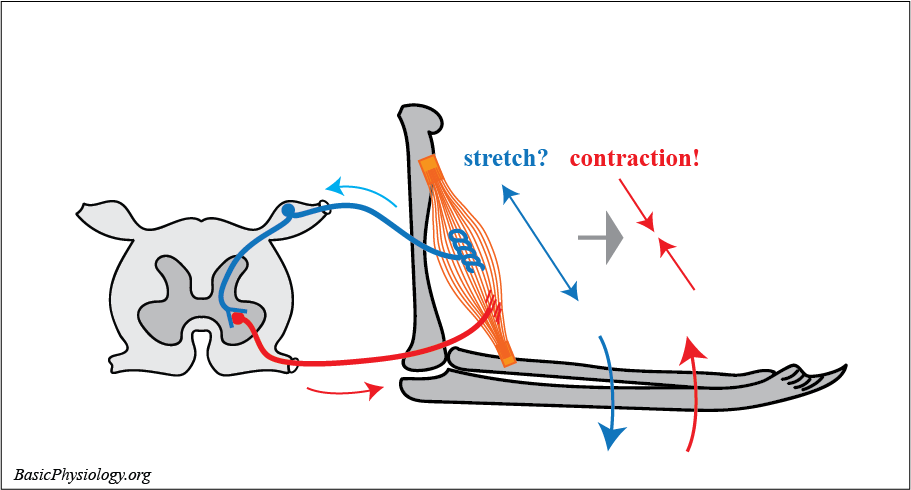 On this page, we will discuss the neuronal reflexes, that occur in the central nervous system. We will start with the most simplex reflex; the muscle stretch reflex.